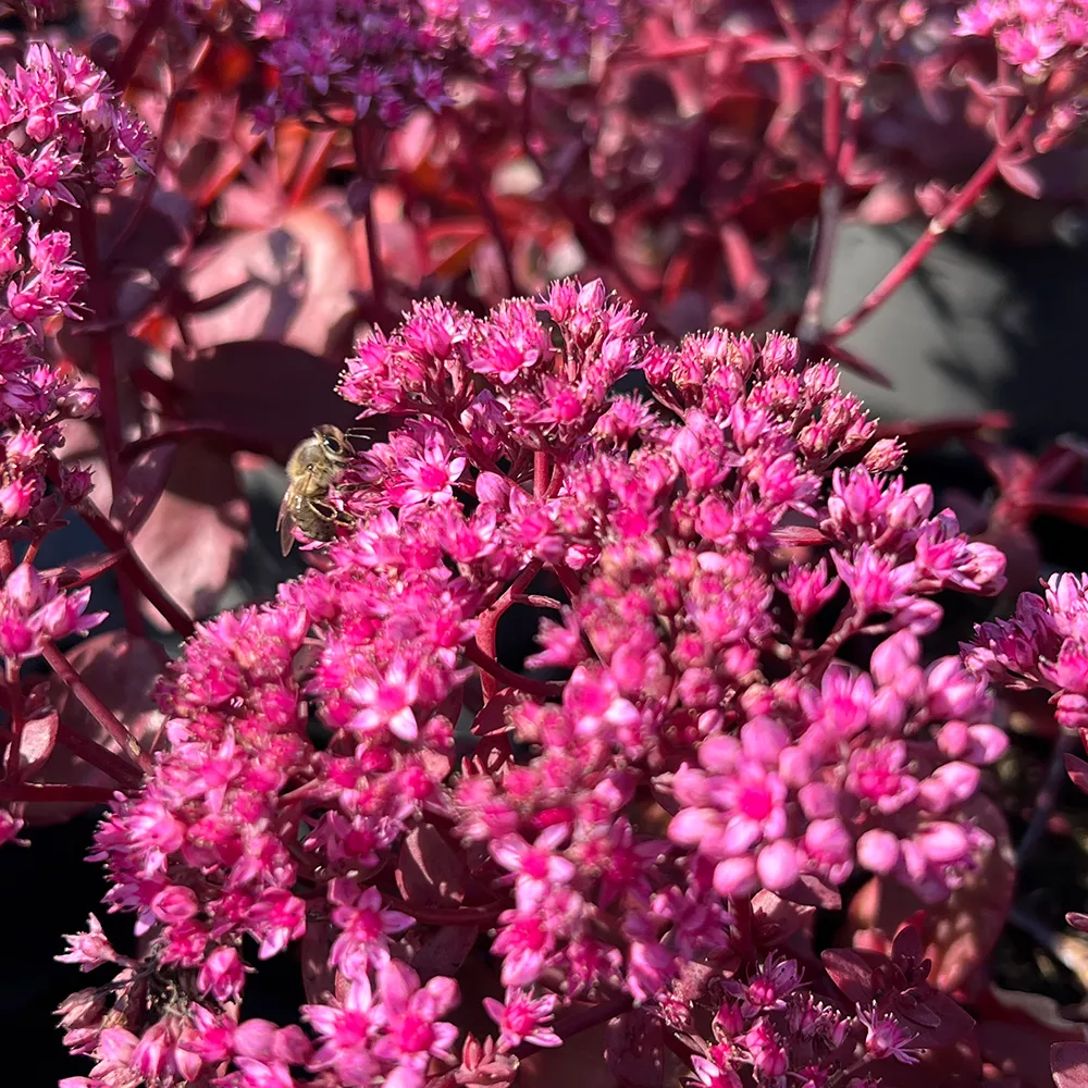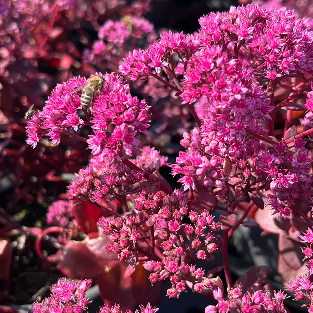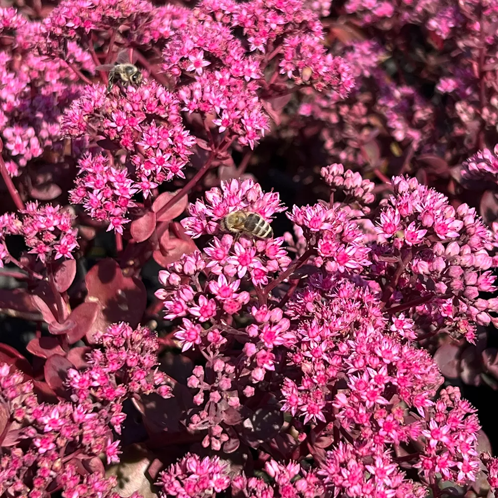 Die Himalaya-Fetthenne gibt es in vielen Farben und Formen und ist ein echter Hingucker für uns und die Bienenwelt, die zu dieser Jahreszeit noch fleissig auf Nektarsuche ist.