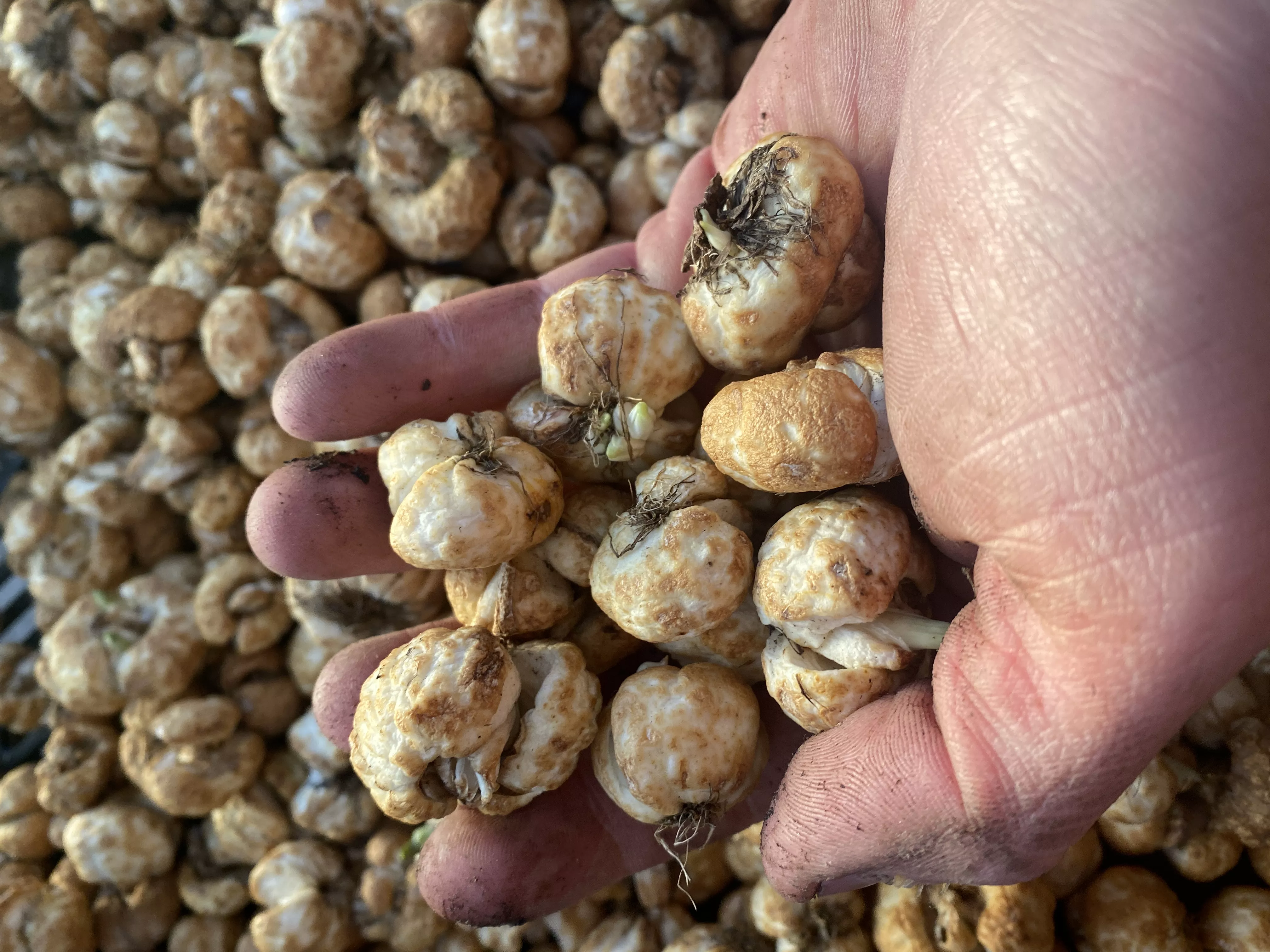 Das gilt auch für die Blumenzwiebeln für das Frühjahr. Sie werden im August von Hand in die entsprechenden Töpfe gesetzt und über den Herbst gekühlt. Im Kühler wird den Zwiebeln die Winterruhe verschafft und im Frühjahr kann der Gärtner dann entscheiden, wann die Blumenzwiebeln austreiben und blühen können.